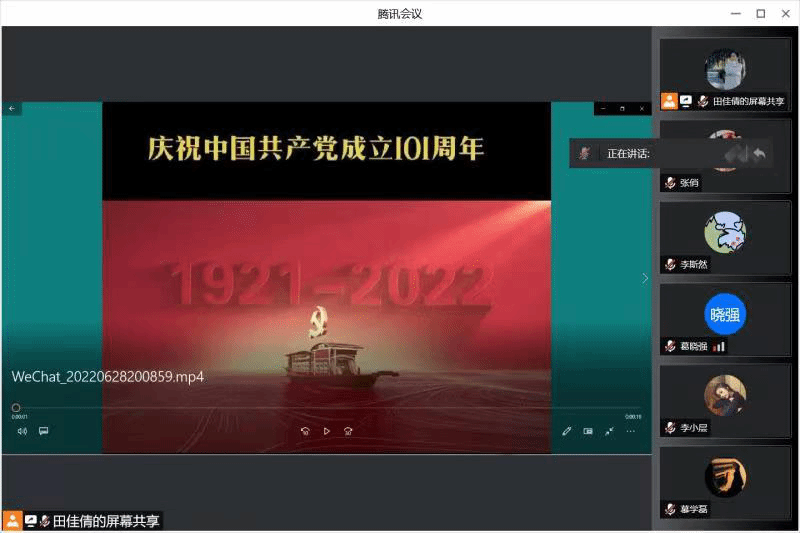 会议伊始,田佳倩同志先传达了此次会议内容及精神,并观看建党百年微视频《理想》,观看完大家都积极进行发言,田佳倩同志说道:“翻开新中国长长的历史画卷,最伟大的最辉煌的便是那中国共产党领导中国人民一步一步走来的艰难而又充满了血泪的一页最让人刻骨铭心,有共产党人的地方,就有共产党人留下的血和泪。自从1921年7月1日,中国共产党诞生的那一刻,我们在党的领导下,凝聚亿万中华儿女的磅礴力量,一直在实现中华民族伟大复兴的中国梦努力奋斗,转眼间,辉煌的党的历程已经走过101周年的历程。”张俏同志说:“7月1日,是伟大的中国共产党成立101周年纪念日。101年来,历经战争风雨的不断洗礼,历经改革开放的不断完善,历经科学发展的创新探索,我们党从根本上改变了中华民族的命运,写下了彪炳千秋的光辉诗篇。视频里慷慨激昂的话语:“在没有路的地方,辟出远方,在理想被包围时,依然捍卫理想。因为相信未来,所以拥有现在。”因为有了他们,如此百年,方有今天,曾经,他们义无反顾,今天,我们当仁不让。”接着,李斯然同志为我们诵读了关于庆祝建党节的主题演讲,大家都深有体会。最后,贾雅栋同志强调全体学生党员要重温入党誓词,并且要将誓词牢记心中。至此,会议结束。
