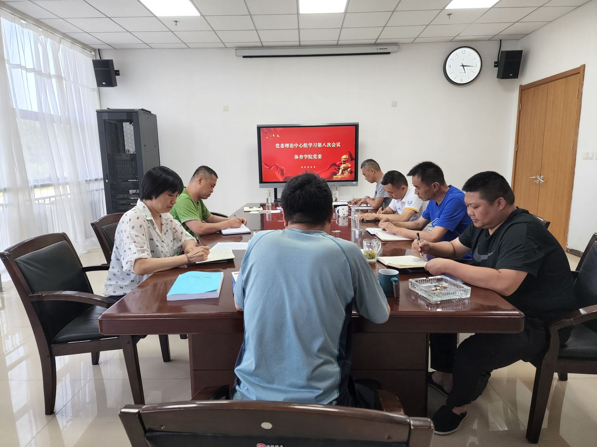 2022年7月8日下午,体育学院党委第一负责人常剑斌与唐月琴、杨杰、王超等共6名老师在体育馆206进行了党委理论学习中心组第八次学习会议。